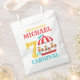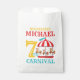 Venez un, venez tous ! Complétez votre décor à la plus grande fête d'anniversaire sous le chapiteau avec notre fête de carnaval de cirque sacs modèles. Ce billet de carnaval de cirque affiche de fête d'anniversaire carrousel rouge et turquoise sur un design de sacs de faveur de fête.
