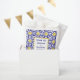 Carrelage portugais, motif bleu, blanc et jaune, Azulejo rustique, Sacs de faveur de mariage méditerranéen. Personnalisez-le avec vos détails.