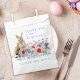 Chasse aux oeufs de Pâques nom de famille personnalisé merci préférez sac avec mignon lapin de Pâques et coloré aquarelle fleur sauvage prairie. Idéal pour les sacs de fête de jardin de printemps et sacs de chasse aux oeufs de Pâques. Script de typographie à écriture bleue Cornflower avec modèle facile d'utilisation pour ajouter un nom de famille. Design minimaliste moderne simple parfait pour une fête de jardin de printemps chasse aux oeufs de Pâques. OEuvre originale de l'artiste Catherine Sweetman