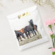 Un dessin photographique d'un troupeau de chevaux qui attendent d'être nourris.