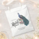 Ces sacs de faveur Blue Peacock Bride Squad chic disposent d'un paon bleu et turquoise dessiné à la main et perché sur les branches de Magnolia en pleine floraison dans l'encre noire et le titre "Bride Squad" en écriture élégante, le tout contre un arrière - plan bleu tendre et chic. Personnalisez avec le nom, la ville et la date de la mariée en cliquant sur "Personnalisez ce modèle" sur la page du produit.