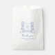 Sacs de faveur de baby shower d'inspiration vintage bleu mignon avec une crête de monogramme floral dessinée à la main avec des papillons et une police manuscrite décalée.