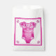 Cielito Lindo sexy chaud maillot de bébé fille baby shower Merci en faveur sacs. Faites-vous plaisir avec ces sacs de remerciement magnifiquement conçus, inspirés par le patrimoine coloré de l'art populaire Talavera mexicain. Chaque sac présente une délicieuse aquarelle illustrant un costume de bébé rose chaud, complété par de délicats accents floraux blancs qui apportent une sensation ludique mais élégante. L'arrière - plan de blanc éclatant met en valeur les motifs roses chauds et détaillés, tandis que les bords élégamment taillés apportent une touche de finition raffinée.