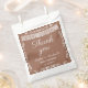 Soft terracotta baby shower favor bags featuring an elegant white papel picado banner and delicate ornamental border. Personalized with names and event date, this treat bag is perfect for a Cielito Lindo–inspired celebration or classic baby shower theme.