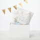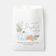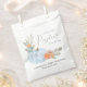Un mignon sac de faveur pour votre bébé douche avec "Merci" dans un joli script gris avec un coeur gonflé, et un bouquet d'aquarelle d'un citrouille bleu pastel, fleurs orange et verdure. Personnalisez le nom de la mère et la date de la douche dans une simple typographie moderne gris clair.