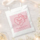 Créez des sacs de faveur personnalisés pour votre douche de mariée avec un cœur dessiné à la main tendance avec un nœud papillon, un texte manuscrit fantaisiste et une palette de couleurs rose et rouge. Toutes les couleurs sont modifiables ! © Kimbellished, LLC