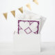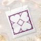 Ce sac de faveur comporte quatre coeurs blancs autour d'un diamant blanc central, surligné de rose pâle sur un arrière - plan de prune.