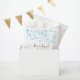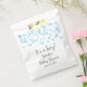 Un coeur bleu bébé transparent et sans poids éparpillé dans l'air. Baby shower giftbag. "L'amour est dans l'air". Le texte peut être modifié ou supprimé.