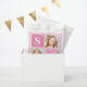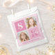 Cool 2 photo carré fête d'anniversaire de faveur sac pour une petite fille ou tout petit. Célébrez l'anniversaire de votre enfant avec de jolies photos d'eux sur ce ajouter votre propre carte photo avec d'adorables carrés roses. Ajoutez leur nom et leur âge.