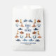 Ces sacs de fête d'anniversaire sont décorés sur le thème du cheval, parfait pour les garçons et les filles qui fêtent un anniversaire de rodéo occidental et invitent leurs amis à s'agiter. La conception comprend une aquarelle illustrant des casquettes de cowboy, des bottes d'équitation et des fers à cheval dans des tons chauds bleu et marron. Placés contre un arrière - plan blanc immaculé, les teintes terreuses et les coups de pinceau doux créent une atmosphère charmante, rustique mais ludique. Sous l’illustration, il y a de la place pour un nom et une date personnalisables dans un script bleu moderne et ludique, ainsi qu’une simple date noire dans une typographie propre, pour une touche personnalisée tout en gardant le thème occidental amusant et frais.