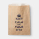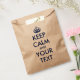 Facile à utiliser créez votre propre sac de faveur texte KEEP CALM ET PORTEZ-VOUS SUR mesure ! Entrez votre propre texte dans la ligne fournie. Cette version a une couronne et un texte bleu foncé.