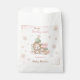 Sacs Favor pour une fille baby shower de Noël avec un adorable bébé ours, arbre de Noël et cadeaux en rose, beige et vert avec fausse parties scintillant flocons de neige dorée et étoiles. Personnalisez facilement tout le texte. - Kate Eden Art