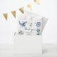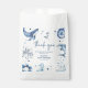 C'est un garçon ! Baby shower Nautique mignon Favoriser Sac. Le design présente d'adorables illustrations balnéaires - dauphin, mouette, poulpe, yacht, baleine, boussole et un cheval de mer. Avec une diffusion d'étoiles dans les tons bleus de l'océan. L'élégant modèle est une combinaison de lettres manuscrites et de polices serif.