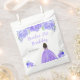 This birthday party favor bag features faux glitter purple floral flowers and a beautiful princess with dark skin hair and an elegant dress. This is perfect for a birthday party.