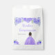 This Quinceanera favor bag features faux glitter purple floral flowers and a beautiful princess with dark skin and an elegant dress. This is perfect for a Quinceanera birthday party.