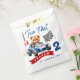 Célébrez le deuxième anniversaire de votre petit avec style avec ce adorable sac de faveur d'anniversaire de voiture de course ! Le design met en valeur un ours en peluche charmant en croisière dans une voiture de course ornée du numéro 2, zoomant le long des pistes de course. Avec une typographie à la mode qui dit "grandir trop vite", ainsi que tous les détails essentiels de la fête, ce sac de faveur donne le ton parfait pour une fête amusante.