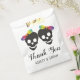 Deux mariées au crâne et confettis aux couleurs arc-en-ciel Le Merci mariage lesbien d'Halloween favorisent le sac. Ce design mariage présente les crânes de deux épouses avec des arcs aux couleurs arc-en-ciel et des confettis colorés autour.