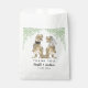 Dégustez vos invités avec un peu de plaisir préhistorique avec ces drôles de mariages à thème dinosaure merci sacs de faveur avec mariée à dinosaure amusant et marié et aquarelle de la végétation botanique. Facile à customiser avec les noms de mariée et mariée, la date mariage dans le script de typographie moderne. Fun T-Rex marié et illustrations de marié en teintes brunes avec aquarelle eucalyptus feuillage dans les teintes vertes. Dino original unique oeuvre de l'artiste Catherine Sweetman