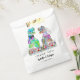 Dégustez vos invités avec ces drôles de dinosaures fleurs sauvages colorés thème mariage Merci sacs de faveur avec les mariés et mariés de dinosaures et le feuillage de jungle jurassique. Facile à customiser avec les noms de mariée et mariée, la date mariage dans le script de typographie moderne. Drôle Tyrannosaurus Rex marié et marié et de belles illustrations fleurs sauvages d'aquarelle dans les tons violet bleu rose jaune et orange. Dino original unique et oeuvres d'art florales d'été de l'artiste Catherine Sweetman