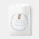 Adorable bébé garçon douche préférez les sacs à bonbons avec charmant lapin lapin bleu avec l'arc et bleu clair fleur sauvage à la couronne.