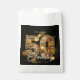 Celebrate a milestone half-century in luxurious style with this dazzling 50th birthday favor bag. The design features a stunning, three-dimensional gold number "50" intricately encrusted with faux diamonds and amber gemstones, set against a sophisticated black background. Surrounded by glowing golden bokeh lights and elegant script typography, this design exudes glamour and class. It is the perfect finishing touch for packaging gourmet treats, candies, or small thank-you keepsakes for your guests, ensuring your golden jubilee celebration leaves a lasting impression.