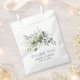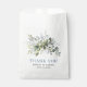 Elégante aquarelle moderne Botanique Greenery Wedding Favor Sac comprend des feuilles d'eucalyptus, feuillage botanique vert, des feuilles bleus poussiéreux et d'autres belles verdure botanique. Texte bleu poussiéreux.