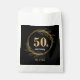 Elégant sac d'anniversaire 50e mariage noir et or. Le design comporte des noms de feuille or, numéro 50 et de calligraphie de script. Cliquez sur personnaliser pour ajouter vos détails ou modifier à l'aide de l'outil de conception pour les modifier plus en détail.