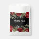 Pretty sweet sixteen favor bag with red flowers and green foliage. The words can be changed to suit your own details or requirements. Would be perfect for a sweet sixteen birthday party.