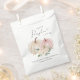 Elégant baby girl shower sacs de faveur avec "un petit citrouille doux est en route" en typographie gris doux et un script avec un coeur swash et aquarelles de citrouilles roses et crème et bouquets floraux.
