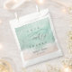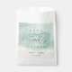 Les sacs de faveur de mariage romantique à thème côtier disposent de belle turquoise abstraite aquarelle brillant de l'océan vague et arrière - plan de plage, surmonté d'un script élégant et d'élégante police détails de l'événement, moderne et simple, idéal pour mariage de plage de sable, mariage de destination tropicale, mariage à thème océanique côtier. Voir toutes les pièces correspondantes dans la collection.