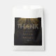 Vous recherchez des décorations de soirées à thème noir et or ? Regardez notre chic sac de mariage moderne Diamant noir et or Favor Bag! Ce magnifique sac de remerciement mariage est doté d'une typographie audacieuse et moderne avec un effet or numérique frappant sur le mot "vous". Le mot "Thank" éblouit par un effet de diamant numérique captivant, ajoutant une touche de luxe supplémentaire. Contre un arrière - plan noir épuré, ce design respire l'élégance et le raffinement, parfait pour les couples à la recherche d'un style contemporain et chic qui se démarque. Idéal pour une célébration glamour et haut de gamme !