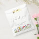 Ce joli sac de faveur de mariage comporte un gracieux "Merci" en écriture élégante au-dessus des noms du couple et de la date mariage, accentué par une charmante rangée de fleurs sauvages colorés le long du fond. Idéal pour déguster des douceurs ou des petits pâtisseries, il ajoute une touche personnelle et romantique à votre célébration tout en faisant sentir aux clients que vous êtes vraiment apprécié.