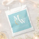 Elégant Monogram Gold Sea Glass Turquoise White Wedding Favor Bag. Personnalisez avec vos initiales en monogramme Mariée & Salle, noms de mariée et de mariée, date mariage en blanc sur carré en verre de mer turquoise bleu. Nous vous invitation à visiter notre magasin Zazzle, Beachy Design Co, pour voir la suite mariage complète. Veuillez nous contacter si vous avez besoin d'aide.