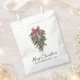 Élégante Calligraphie moderne Encre Script Aquarelle Pins Végétation hivernale avec Burgundy Rouge Ribbon Bow Ornements de Noël, Pine Cônes et Baies Souris Joyeux Noël Favoriser Sac