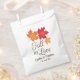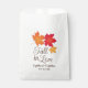 Les sacs de faveur de mariage thématiques "Fall in Love" présentent un feuille d'érable d'automne vibrant et un monogramme personnalisable en chocolat des noms de mariée et de mariée et de date de mariage.