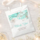 Un joli sac-cadeau de fête de mariage avec une torsion florale turquoise. Un moyen idéal pour remercier vos invités d'avoir assisté à votre événement ou comme décoration de table. La couleur de fond et le texte peuvent être modifiés pour répondre à vos besoins.