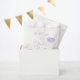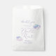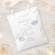 Sac de faveur de la douche nuptiale Dreamy avec aquarelle illustration de nuages roses, violets et bleus avec un texte typographique qui dit "la mariée est sur le nuage neuf."