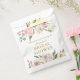Customisez ces élégants sacs de douche à nuptiale fleurie sont décorés avec de belles roses et des pivoines roses. Beau sac de faveur personnalisé pour un événement mariage de printemps ou d'été écrit en écriture chic antique or script.