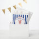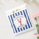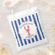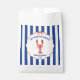 Donnez à votre fête prénuptiale une touche nautique avec ces sacs de faveur en papier personnalisés. Tout le texte est prêt pour votre touche personnelle, y compris le slogan en haut, le nom de l'événement et la date. Ils présentent mon illustration de style réaliste dessinée à la main d'un homard en rouge avec votre texte en bleu. Le texte et le graphique sont placés à l'intérieur d'un cadre festonné dessiné à la main avec un aspect de ruban et un nœud en haut sur un fond rayé nautique bleu et blanc.