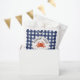 Illustration d'un crabe sur un arrière - plan en vichy bleu et blanc. Personnalisez les noms et la date.