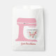 Ce sac de faveur personnalisé ludique présente un mélangeur rose avec la phrase "L'esprit de pâtisserie brillant" avec des couleurs alternées et des accents scintillants. Les couleurs incluent le rose, le rouge, le vert et le bleu clair. Vous pouvez personnaliser avec votre nom de famille, ce qui en fait le sac parfait pour emballer vos pâtisseries !
