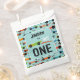 Fast ONE racecar sur le thème 1er anniversaire partie sacs de faveur. Voitures de course amusantes pour la première fête d'anniversaire d'un enfant.