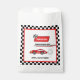 Les sacs de faveur attrayants mêlent le charme vintage à la fantaisie ludique, avec une voiture de course rétro magnifiquement illustrée en couleur rouge.