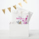 Conçu d'après mon illustration de mode d'une belle dame aux cheveux blonds portant une robe élégante classique blanche et grise à pétales de fleurs époustouflante. Le design comporte un texte personnalisable au centre et des bulles de coeurs roses en arrière-plan. Cadeau parfait pour les amateurs de mode ! Personnalisable avec votre propre texte pour une conception personnalisée.