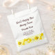 Un sac de petite entreprise personnalisé avec un grand texte modifiable en haut pour le nom et le message de votre entreprise, et un texte plus petit en bas pour votre adresse ou d'autres informations, et une illustration vintage d'abeilles sur un nid d'abeilles. Il est facile de changer les polices, les couleurs de fond, de télécharger votre logo, même de sauvegarder votre conception pour plus tard.