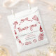 Offrez à vos invités un peu de gratitude avec ce sac-cadeau de pizza dessinée à la main façon italienne pour votre shower de mariage "Merci" ! Décoré d'illustrations fantaisistes dessinées à la main de pizza, de pâtes, de vin et de détails italiens rouges classiques, ce sac-cadeau ajoute la touche finale parfaite à votre shower de mariage. Idéal pour être rempli de friandises, de petits cadeaux ou de gourmandises, il est parfait pour une célébration "C'est l'amour" ou tout événement sur le thème italien. Une façon charmante de dire grazie avec style et saveur !