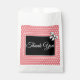 Un sac de remerciement rose et blanc pour la douche nuptiale, mariage et cadeaux fiançailles. Décor vintage style rétro inspiré pois et design arc.