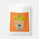 Ce pack impressionnant de 50 sacs de faveur présente une image graphique d'un crâne inspiré de la Journée mexicaine des morts (Dia de los Muertos). Le crâne est gris pâle et porte un sombrero jaune. Il a des dents d'or et des tournesols mexicains, également appelé Tithonias< au lieu des yeux. Le sombrero a un cactus dessus et est couvert de motifs tourbillonnants et de piments de chili rouge et vert. Le crâne lui-même est recouvert de jolies fleurs colorées de différents types.