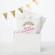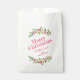 Sacs de Noël personnalisés avec une aquarelle design et moderne de feuilles verts et de baies rouges avec votre accueil et des informations en lettrage chic. CORRESPONDANCE d'objets dans notre collection.