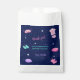 Ces sacs de faveur mignons rose, violet et bleu sommeil de soirée sont l'ajout parfait amusant à toutes les fêtes d'anniversaire girlie sleepover. Customisez-les avec vos propres détails et utilisez l'outil d'édition pour effectuer d'autres ajustements tels que la taille de police, le placement et la couleur.